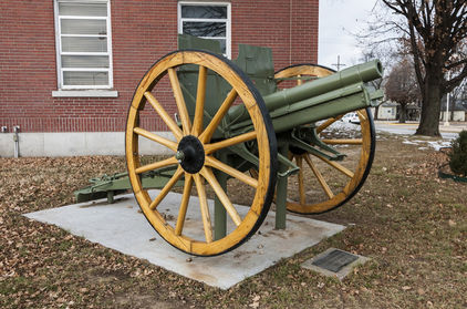 By June 1924, nearly all interior work was completed, including wiring, plumbing, electrical, and ventilation. Two 7,000-pound cannons were installed for display at the front of Memorial Hall. One of them was a 5-inch siege gun, and the other was a 7-inch howitzer, both mounted on carriages. The date set for the dedication of the Carthage Memorial Hall was September 12. It was arranged by Mayor C. W. Thomas to fall on National Defense Day, a now-defunct holiday that would have its inaugural celebration that same day.